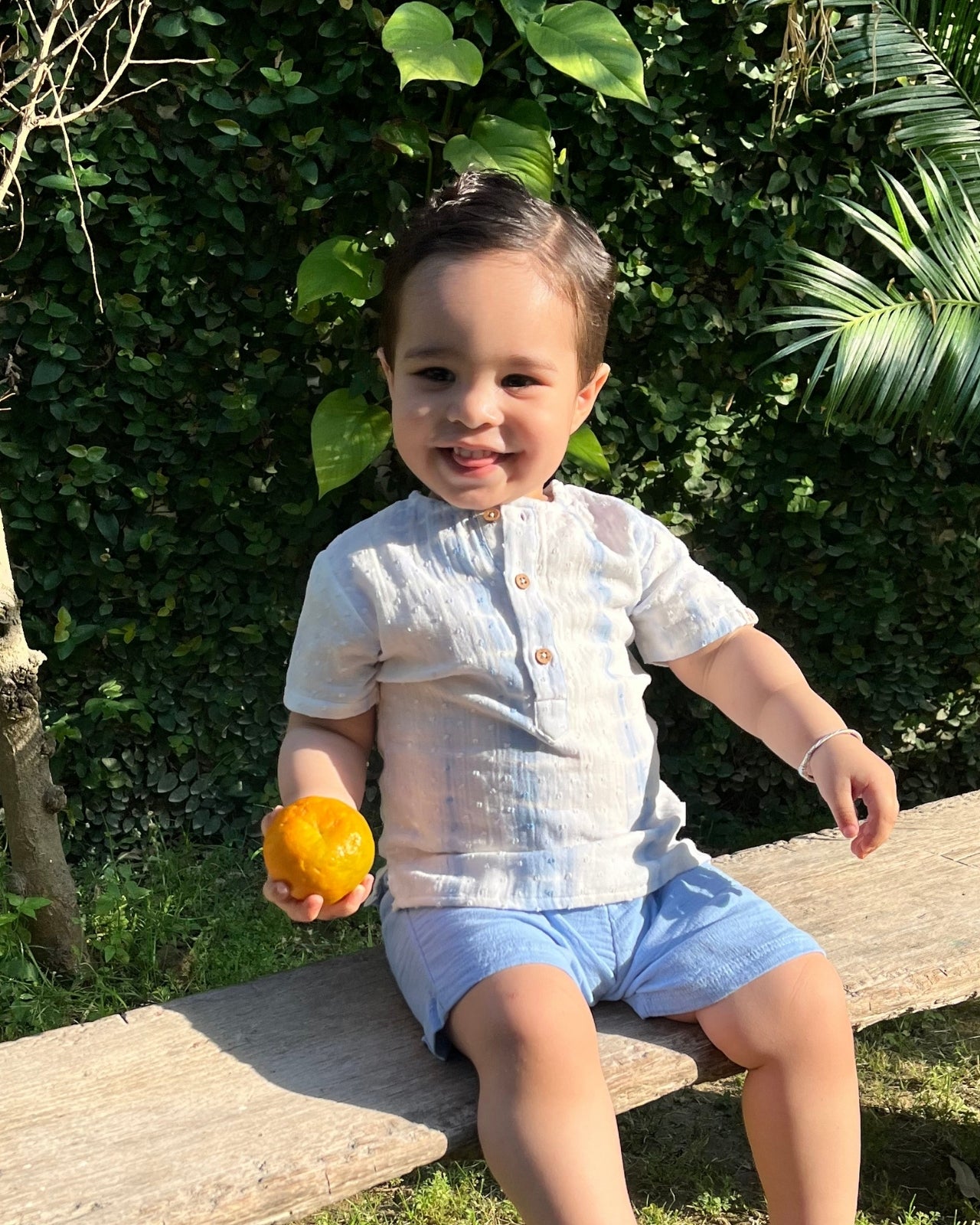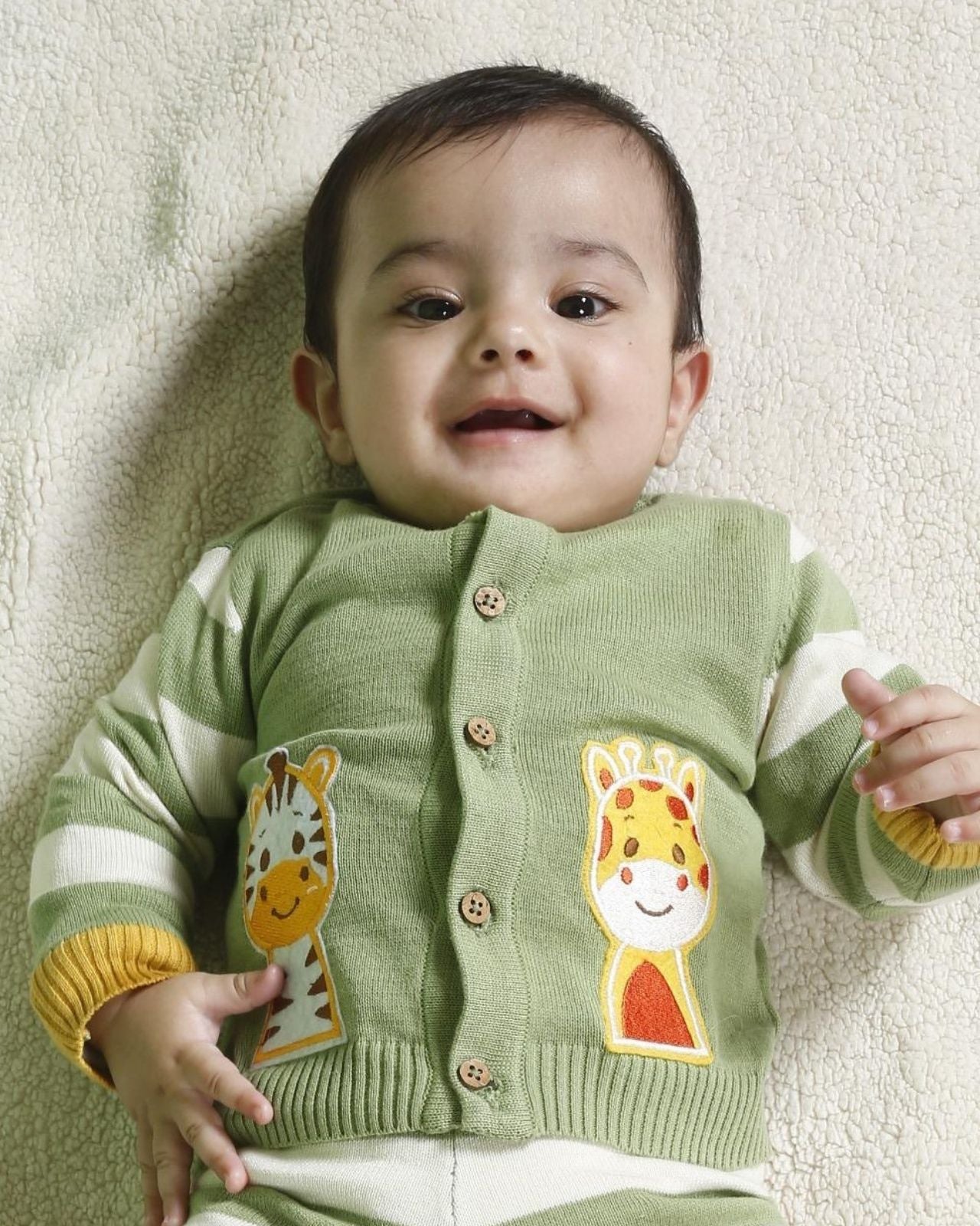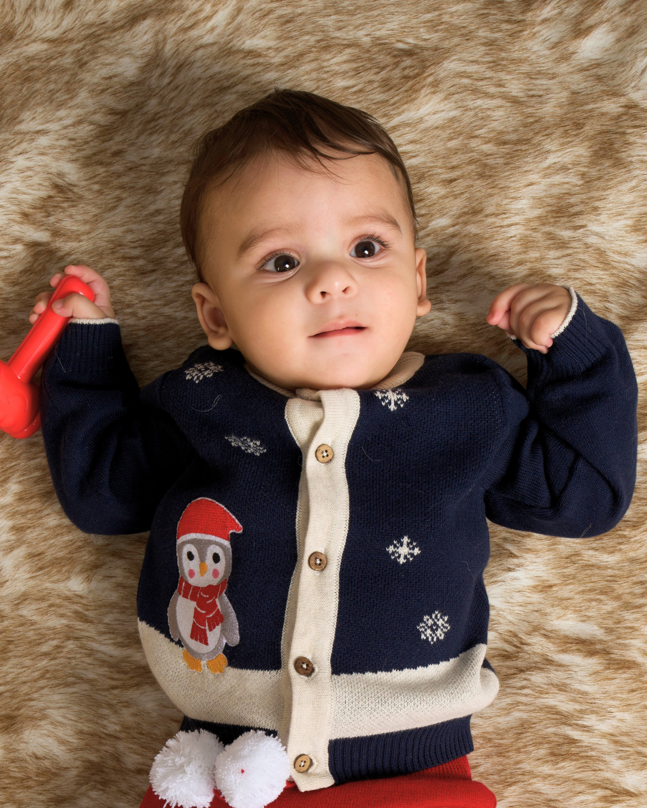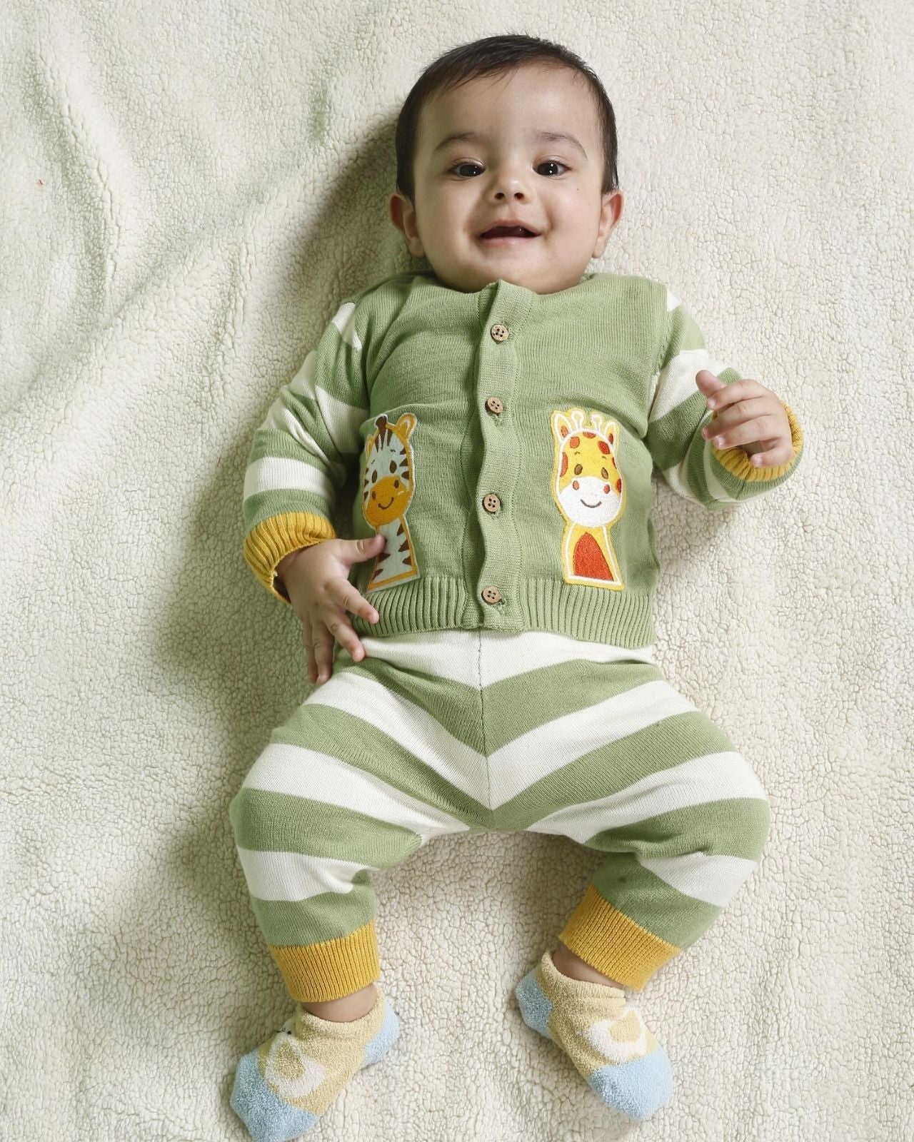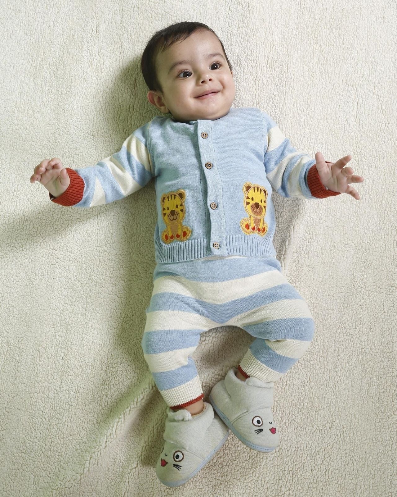 100% Cotton Jacquard Sweater - Greek Blue with Lower Set of 2