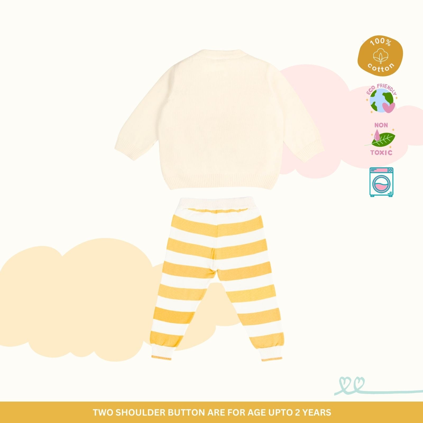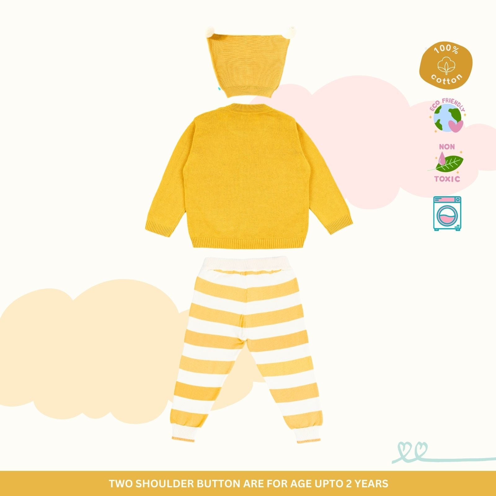 100% Cotton Creme Baby Ballon Sweater with Lower & Cap Set of 3