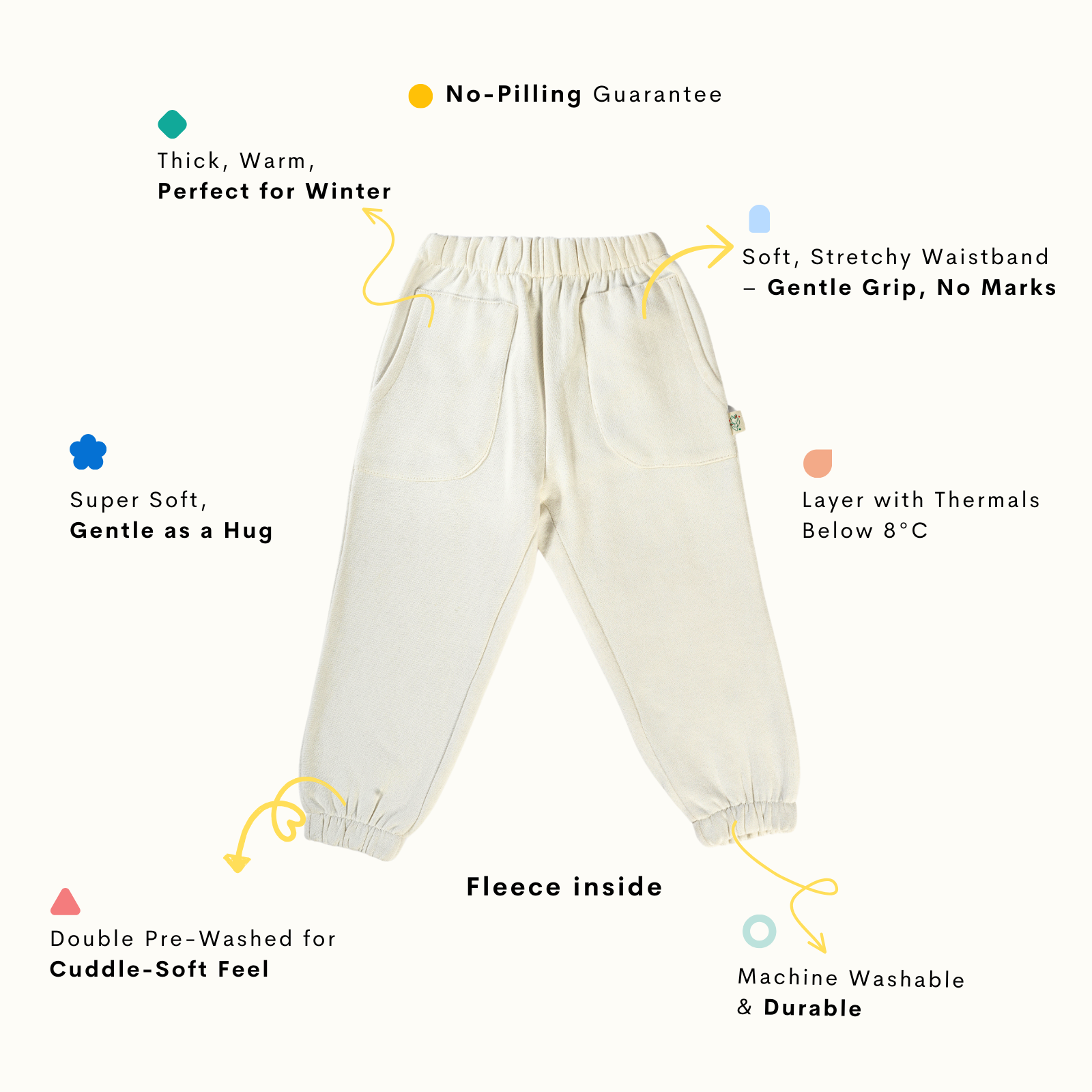 Designed with a roomier body-fit, our signature lowers ensure ultimate comfort and ease of wear for babies. Crafted from 100% natural, non-toxic materials, these lowers prioritize your baby's safety and well-being.
