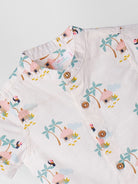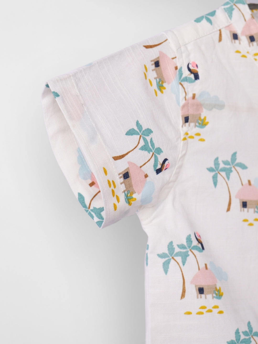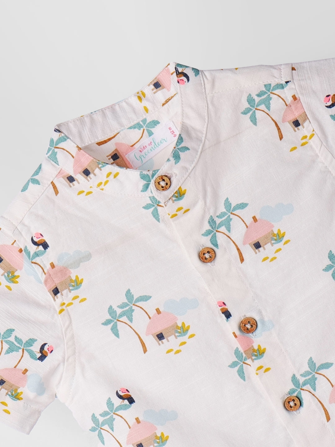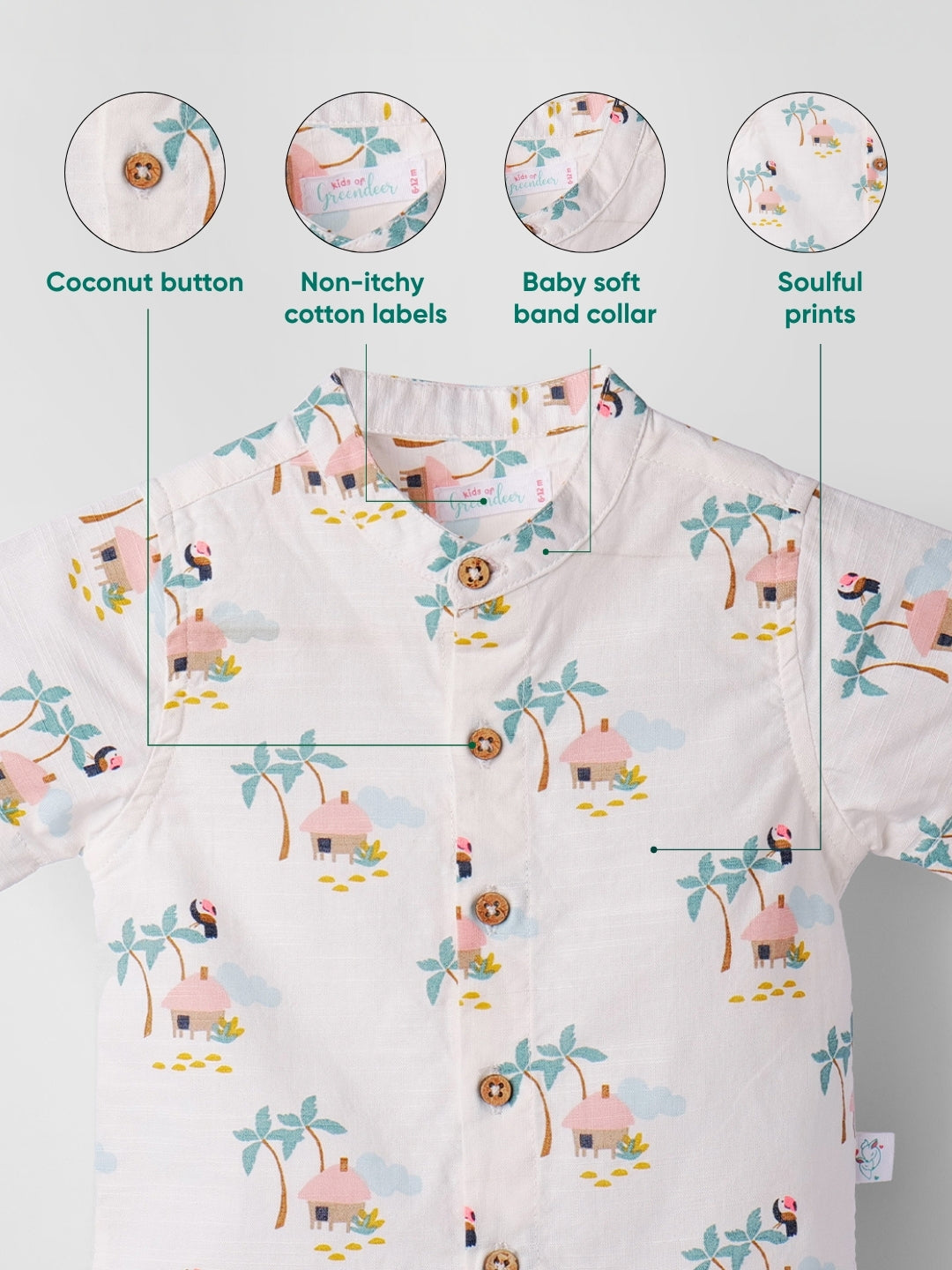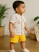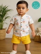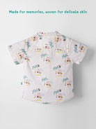 Wrap your little one in cloud-like comfort with this 100% Eco Cotton shirt, designed for delicate skin and joyful moments. Featuring all-over baby-safe prints, each piece is pre-washed for ultra-softness and free from harmful azo dyes, ensuring gentle wear from playtime to naptime. The non-itchy cotton labels, baby-soft band collar, and coconut buttons add thoughtful, skin-friendly details, while the breathable double-cloth muslin fabric keeps them cool and cozy.