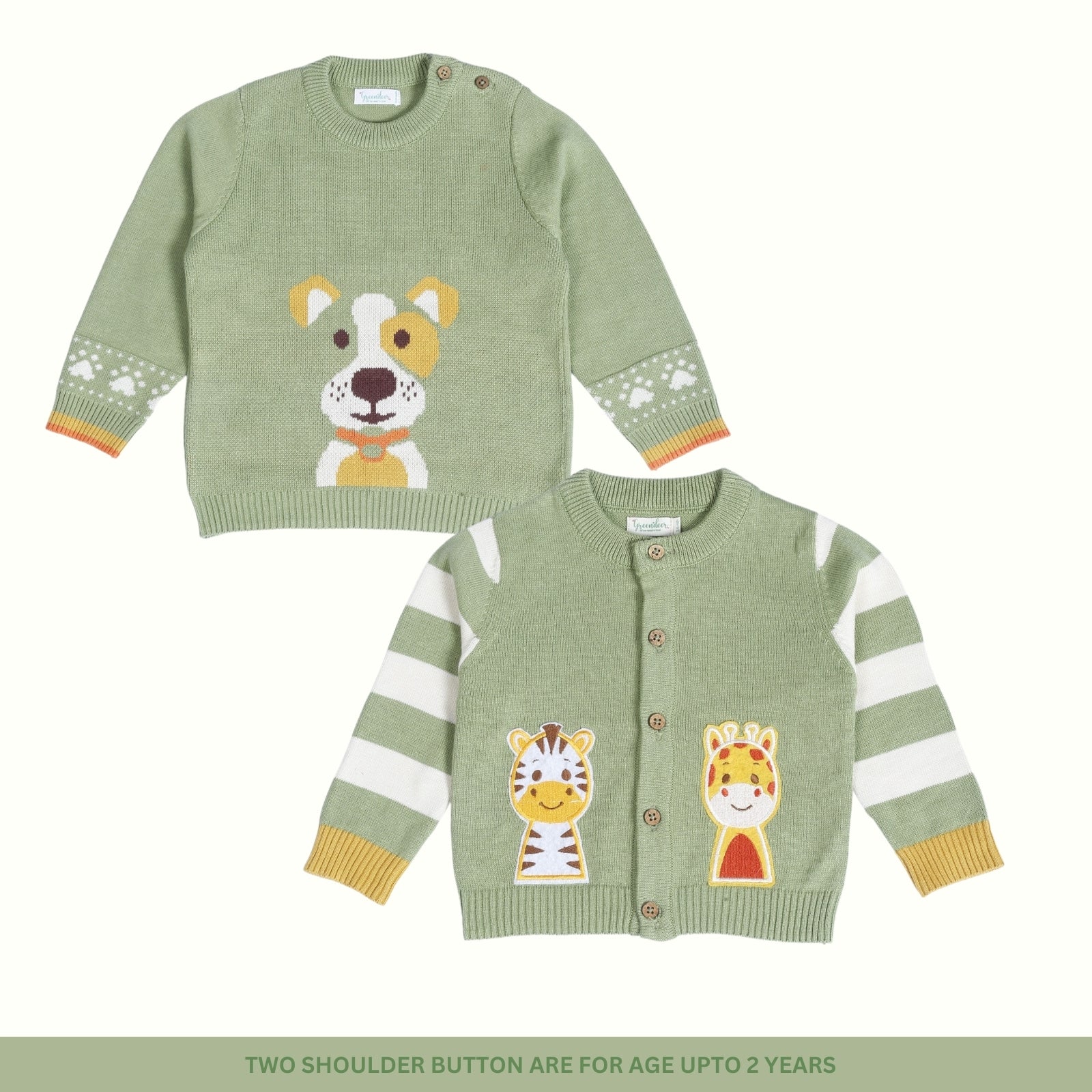Our signature sweater and lower set features a roomier body-fit, ensuring ease of wear for babies. Crafted from 100% natural and non-toxic materials, it prioritizes their safety and well-being. The signature diaper lowers are designed with a low crotch and soft rib with a drawstring, allowing for a roomier and comfortable fit, enabling free movement.