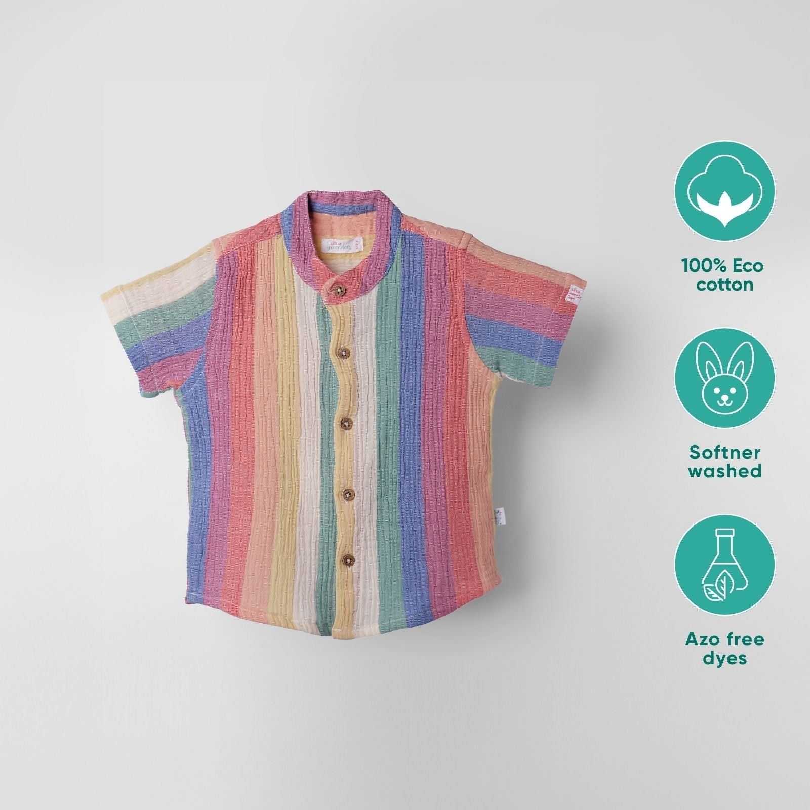 Crafted for the gentlest touch, this 100% Eco Cotton shirt is made from double-layered muslin fabric, offering unmatched softness and breathability. The pre-washed and yarn-dyed construction ensures long-lasting color vibrancy and a zero-shrink, featherlight feel—perfect for sensitive skin. Designed with thoughtful details like coconut buttons, non-itchy cotton labels, and a baby-soft band collar, it guarantees irritation-free comfort. The easy-movement fabric allows unrestricted play, making it ideal for kids and adults who crave effortless style and sustainability.