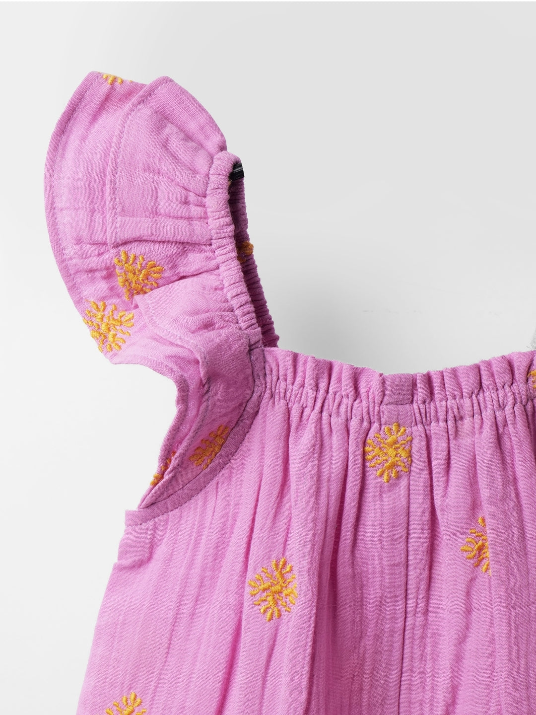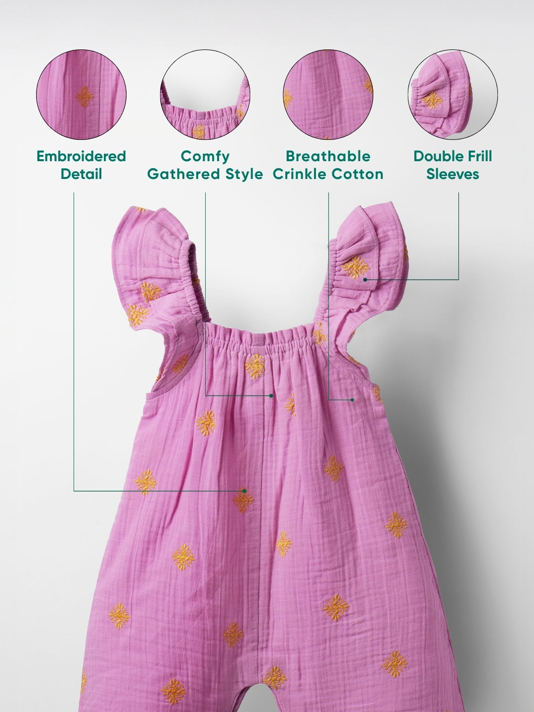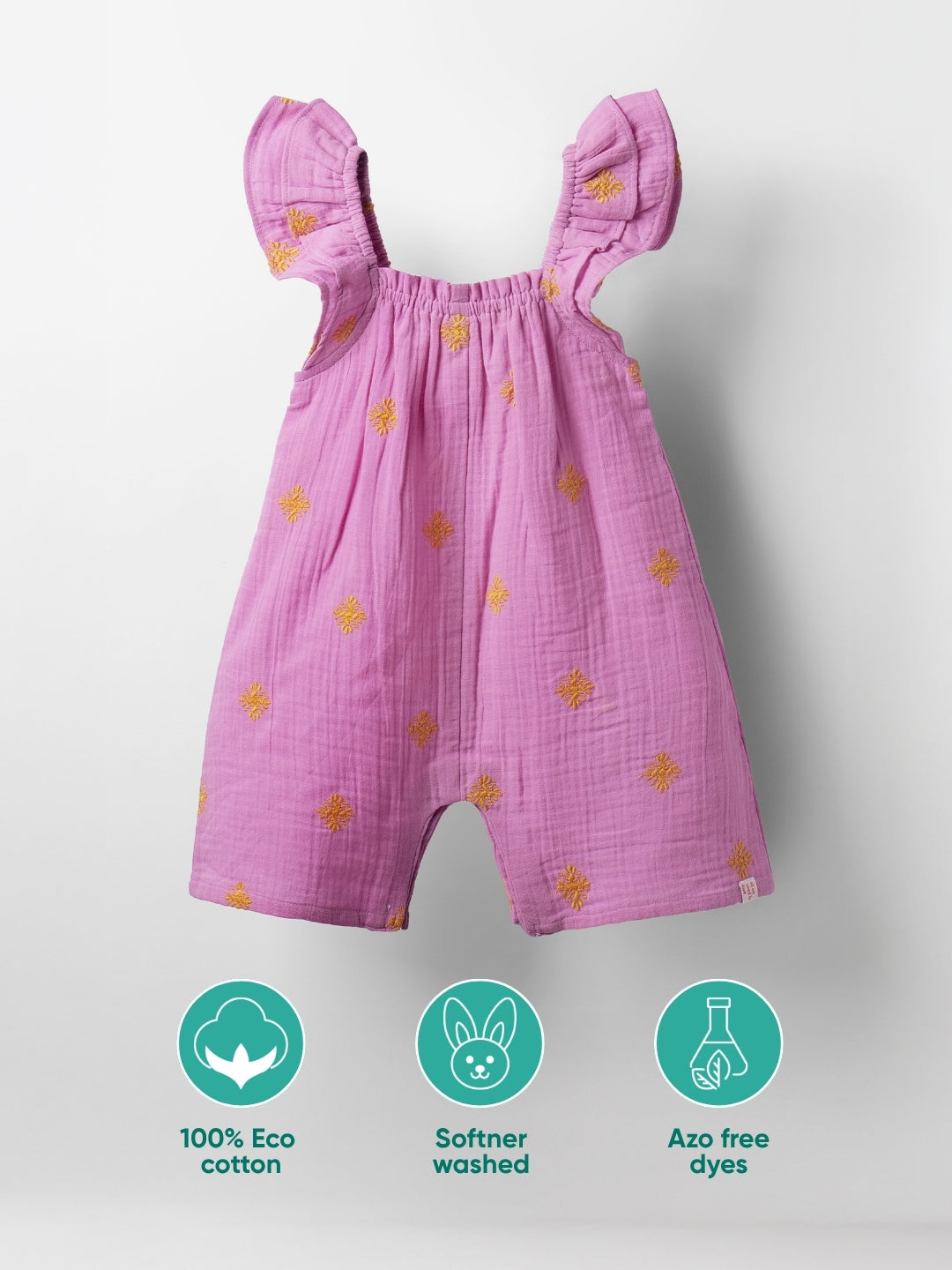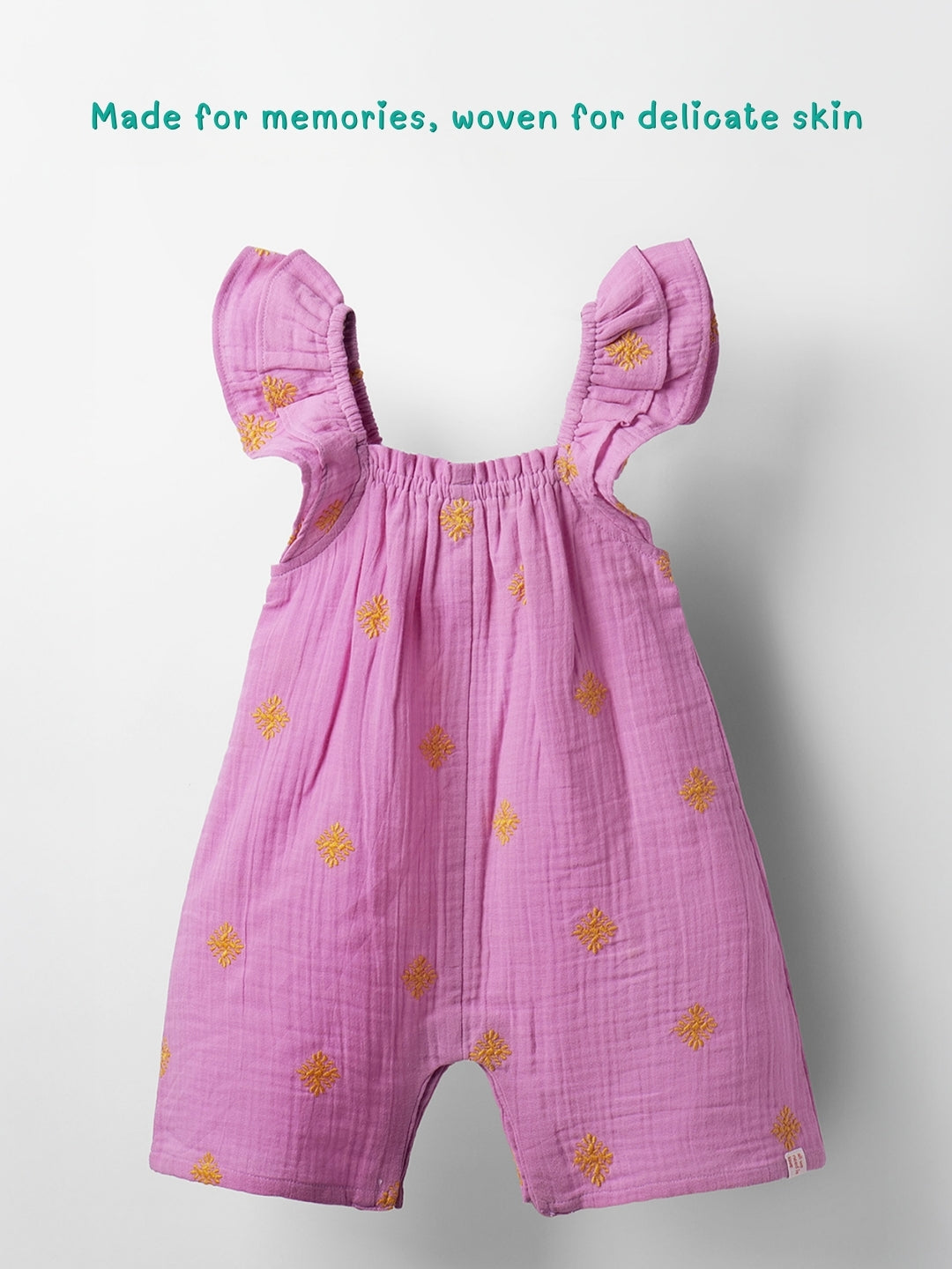 Girls Frill Sleeve Muslin Romper - Eco Cotton, Softner Washed