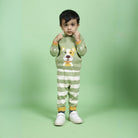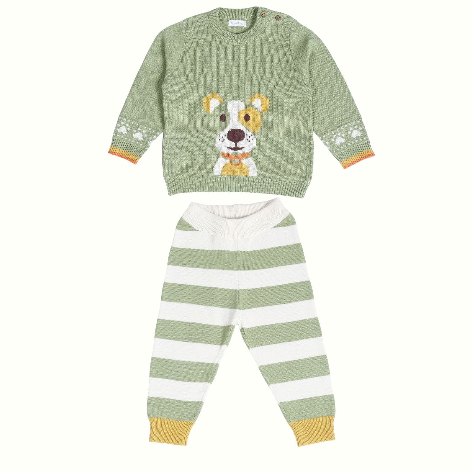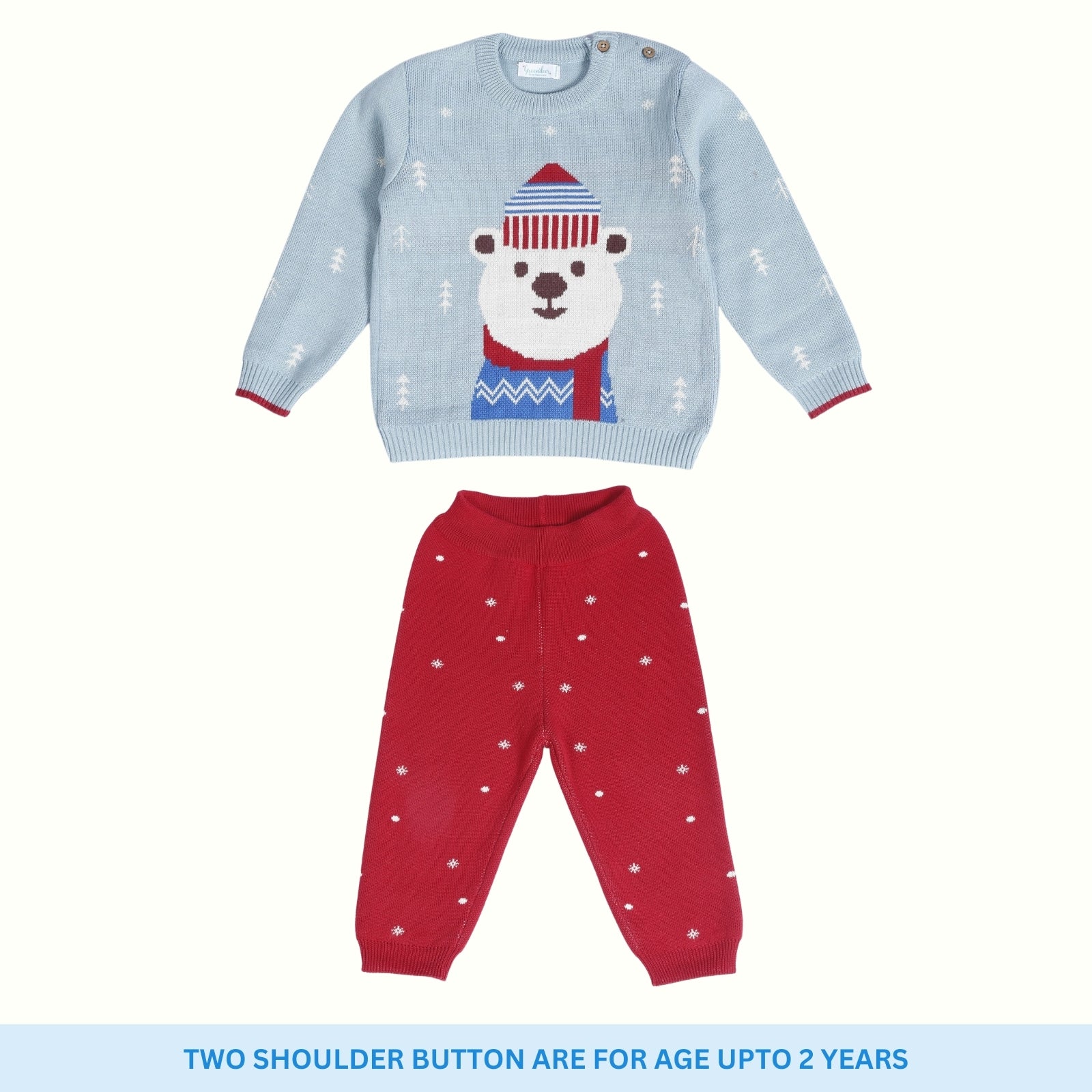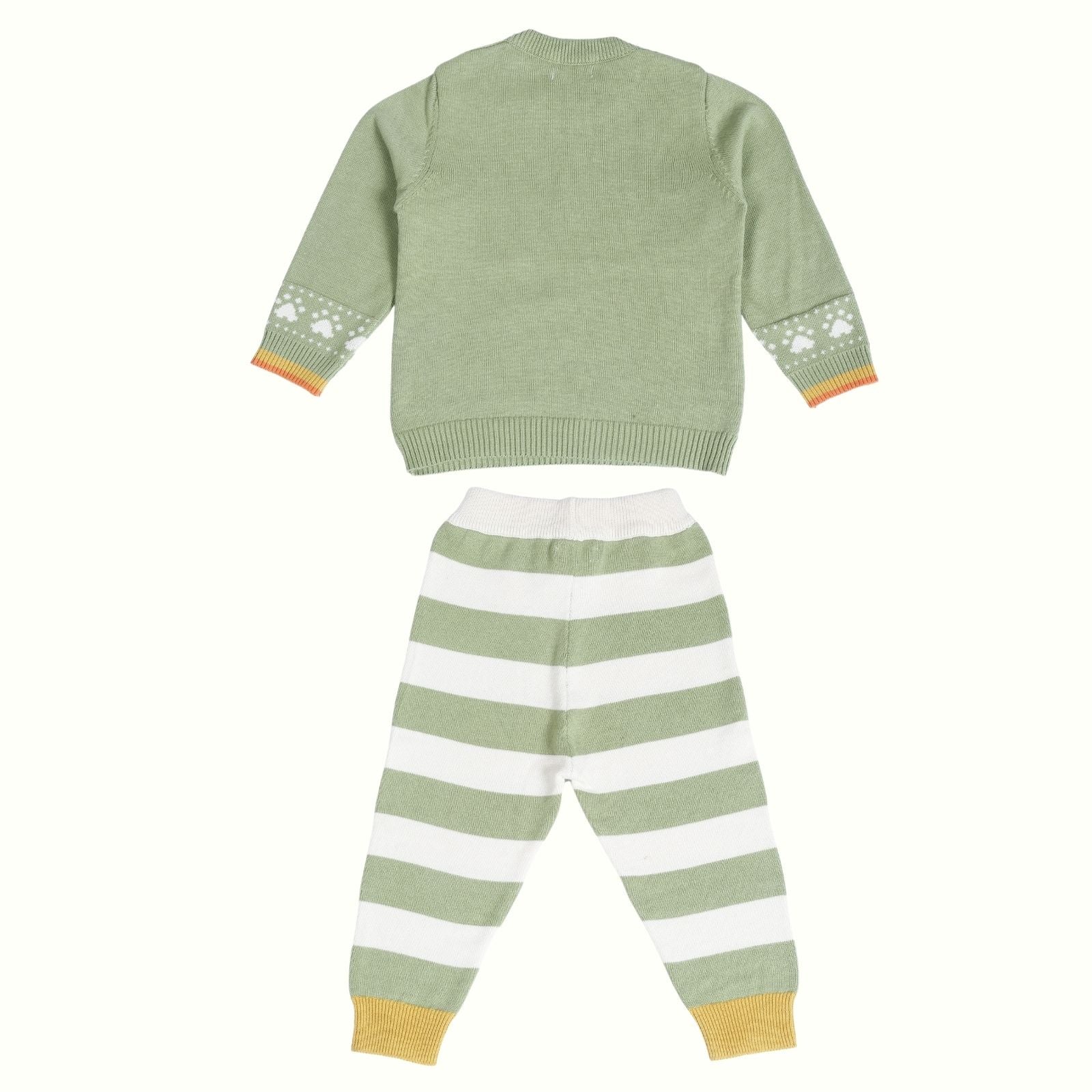 Our signature sweater and lower set features a roomier body-fit, ensuring ease of wear for babies. Crafted from 100% natural and non-toxic materials, it prioritizes their safety and well-being. The signature diaper lowers are designed with a low crotch and soft rib with a drawstring, allowing for a roomier and comfortable fit, enabling free movement.
