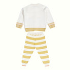 Our signature sweater and lower set features a roomier body-fit, ensuring ease of wear for babies. Crafted from 100% natural and non-toxic materials, it prioritizes their safety and well-being. The signature diaper lowers are designed with a low crotch and soft rib with a drawstring, allowing for a roomier and comfortable fit, enabling free movement.
