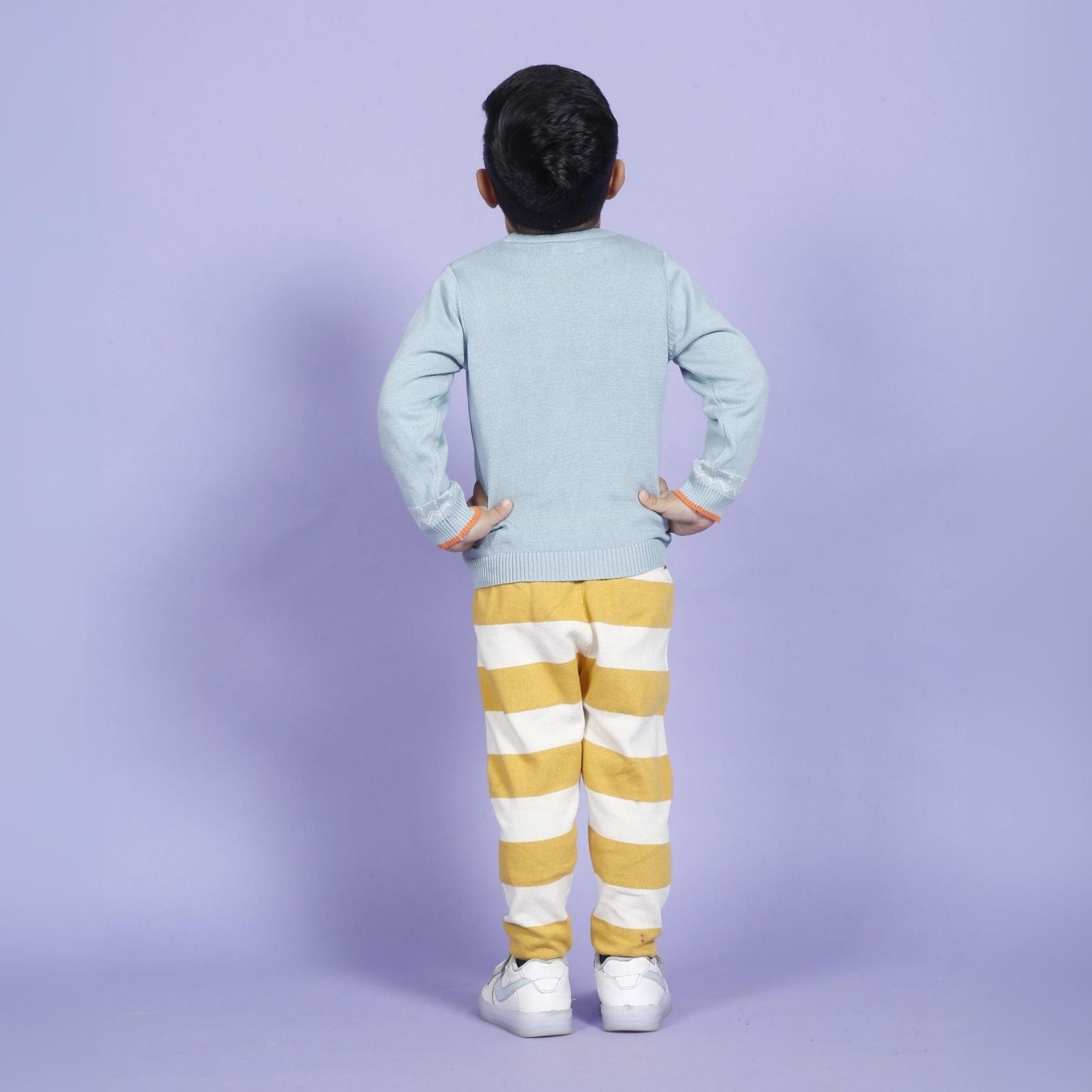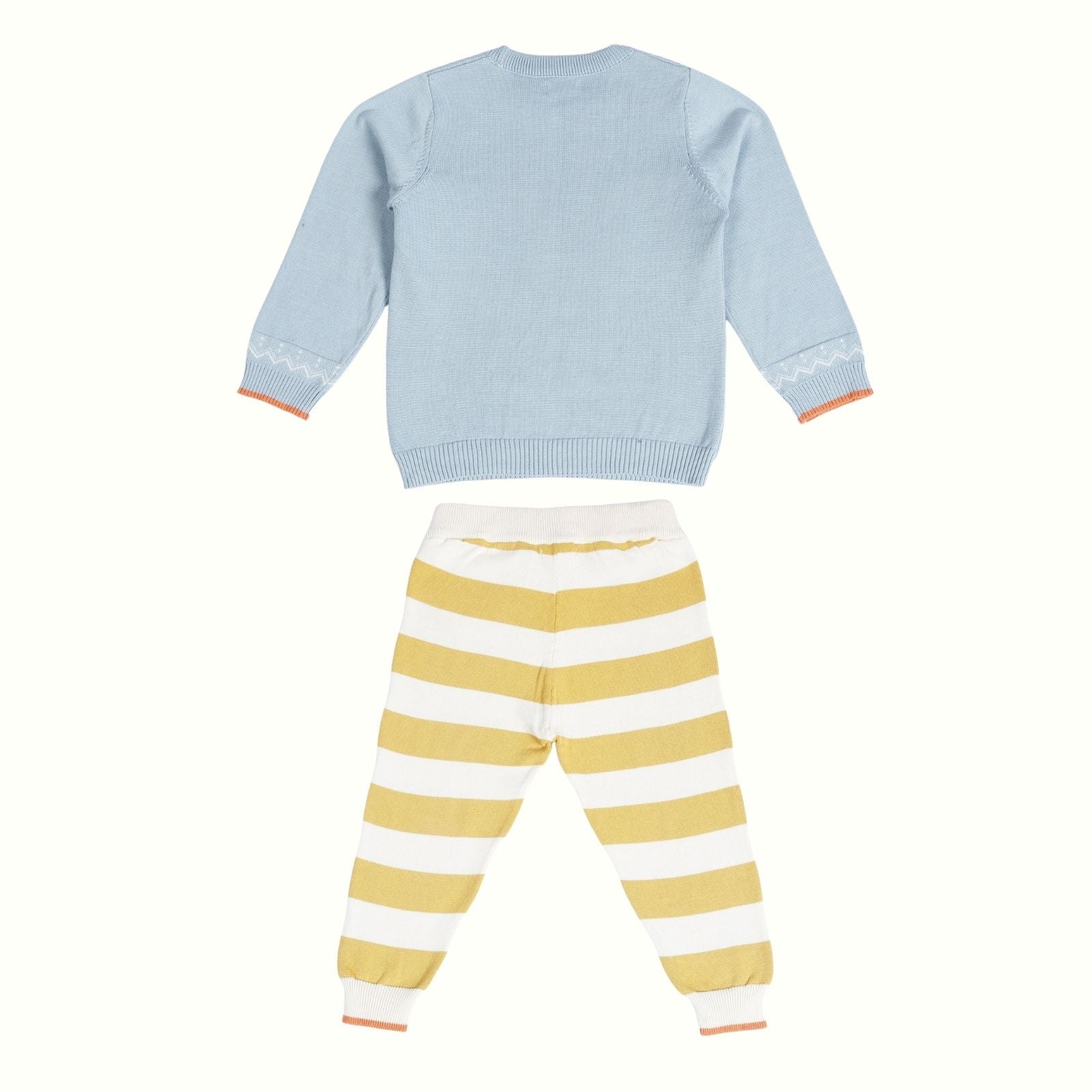 Our signature sweater and lower set features a roomier body-fit, ensuring ease of wear for babies. Crafted from 100% natural and non-toxic materials, it prioritizes their safety and well-being. The signature diaper lowers are designed with a low crotch and soft rib with a drawstring, allowing for a roomier and comfortable fit, enabling free movement.