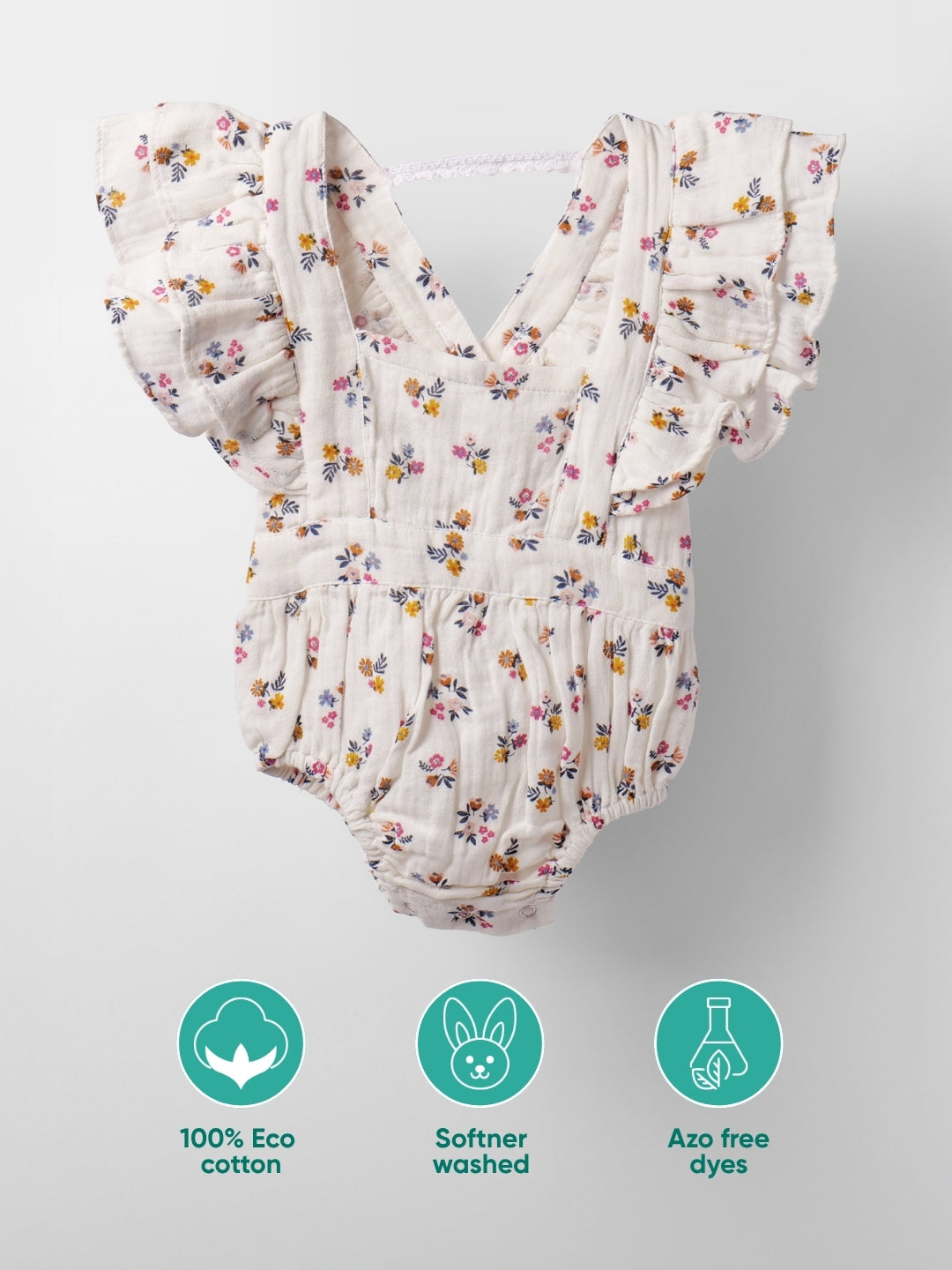 Greendeer Infant Muslin Frill Onesie - Eco Cotton, Softner Washed