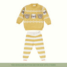 Our signature sweater and lower set features a roomier body-fit, ensuring ease of wear for babies. Crafted from 100% natural and non-toxic materials, it prioritizes their safety and well-being. The signature diaper lowers are designed with a low crotch and soft rib with a drawstring, allowing for a roomier and comfortable fit, enabling free movement.