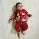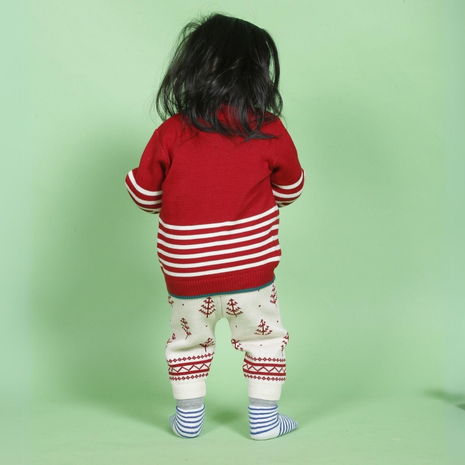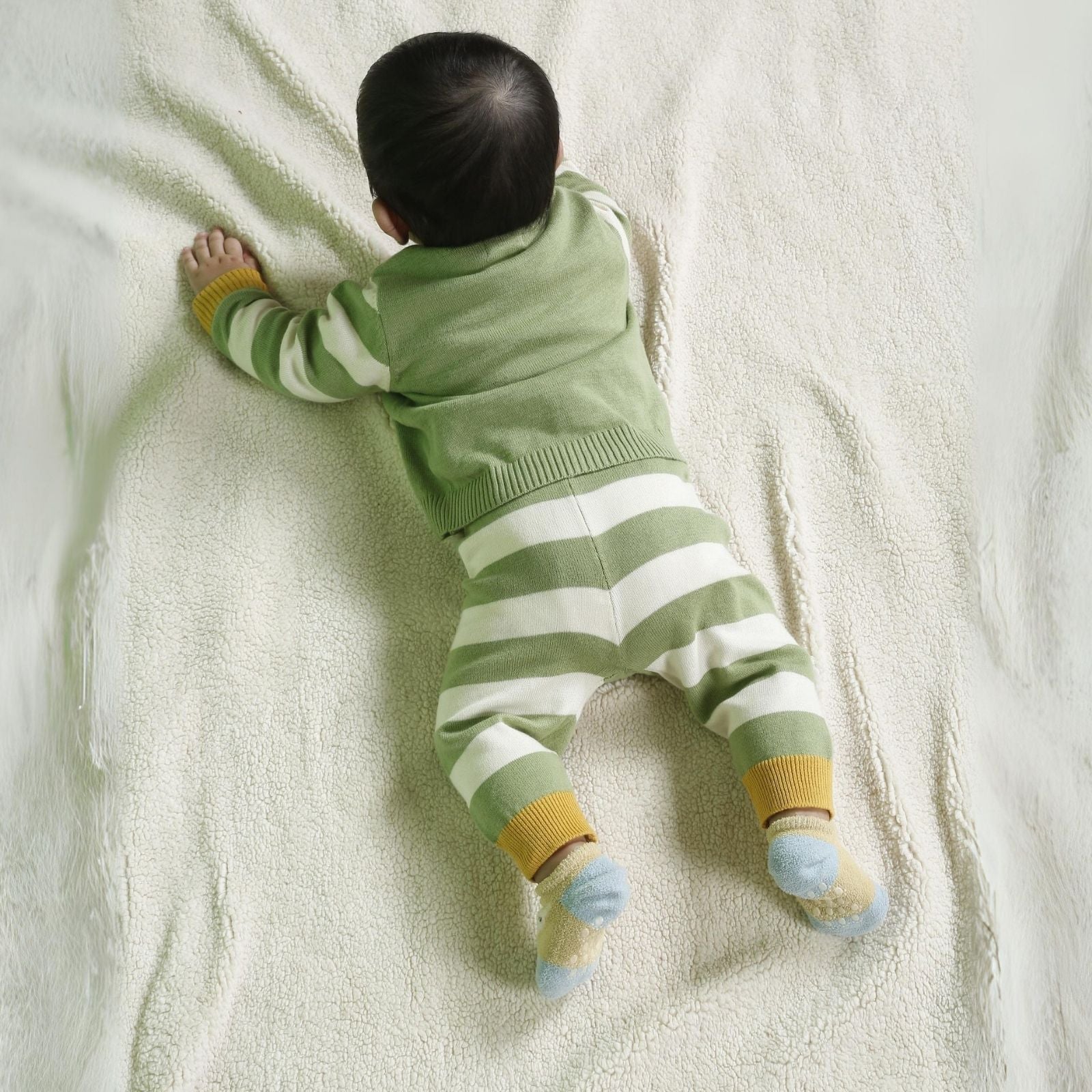 Our signature sweater and lower set features a roomier body-fit, ensuring ease of wear for babies. Crafted from 100% natural and non-toxic materials, it prioritizes their safety and well-being. The signature diaper lowers are designed with a low crotch and soft rib with a drawstring, allowing for a roomier and comfortable fit, enabling free movement.