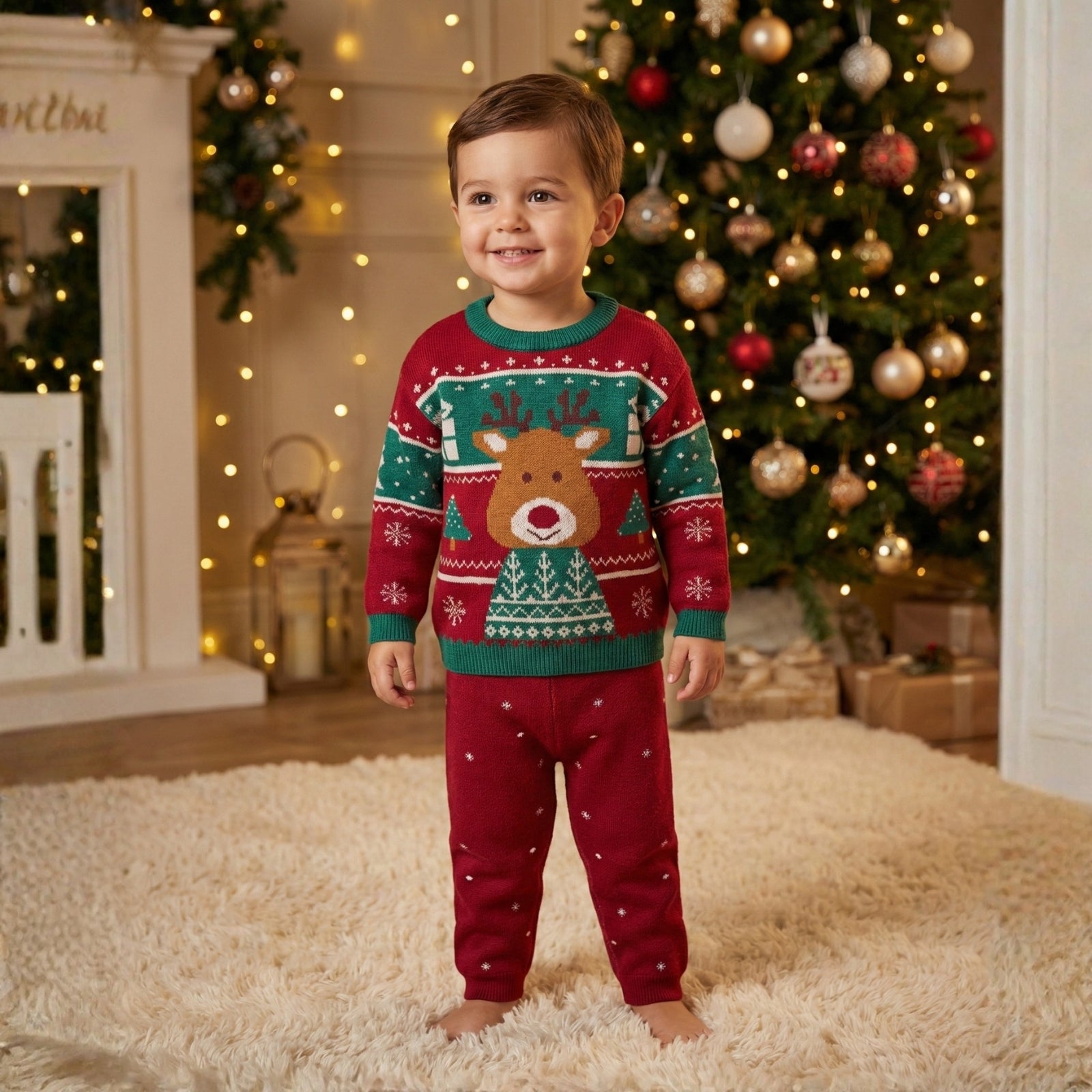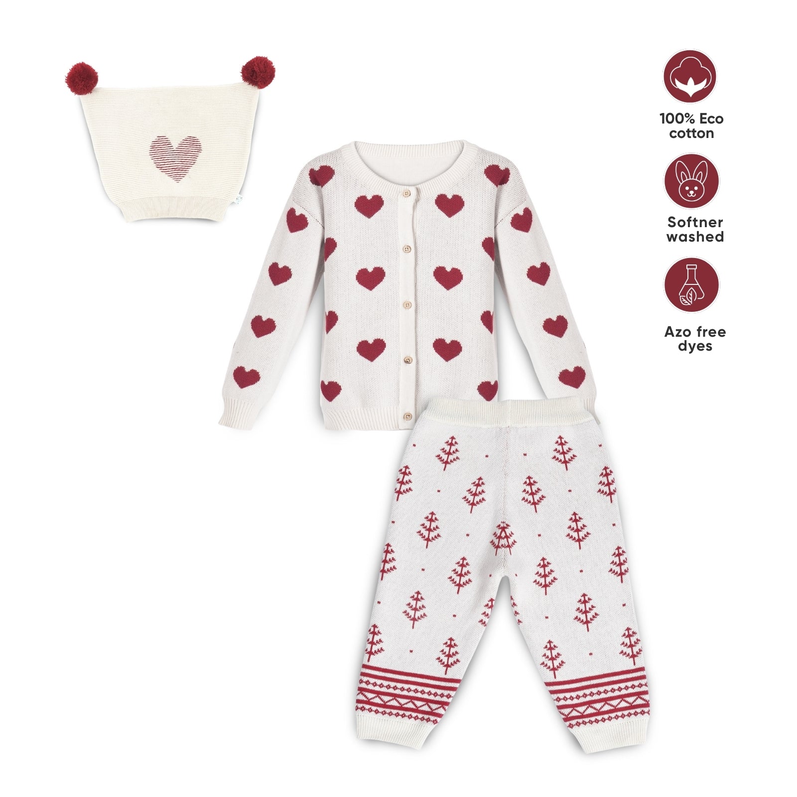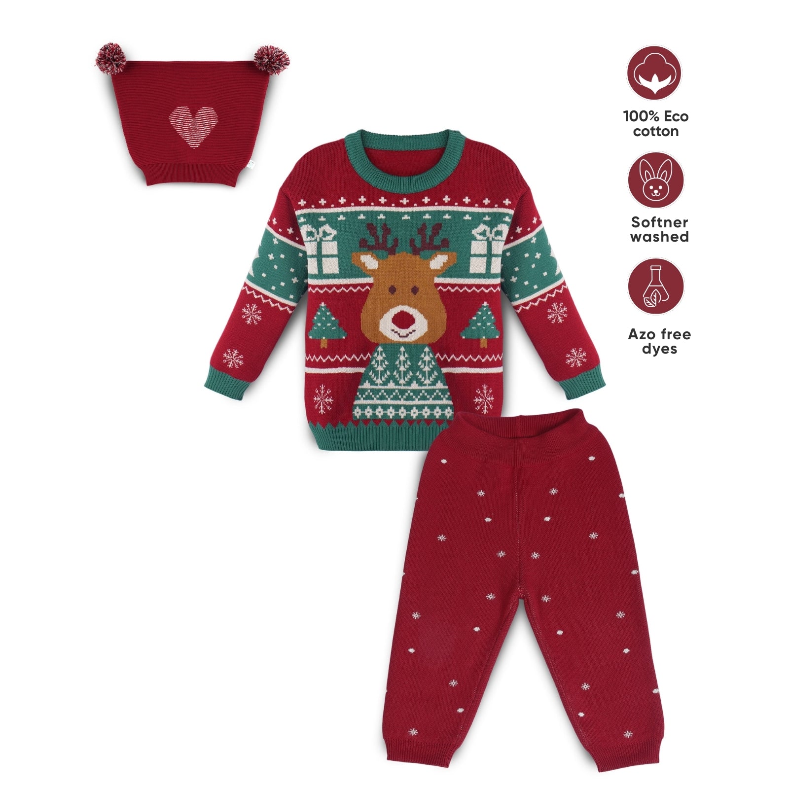 Crafted with ultra-soft, breathable, pre-washed cotton knit, this festive set is warm, cozy, fashionable, and non-itchy perfect for ages 0-8 years.