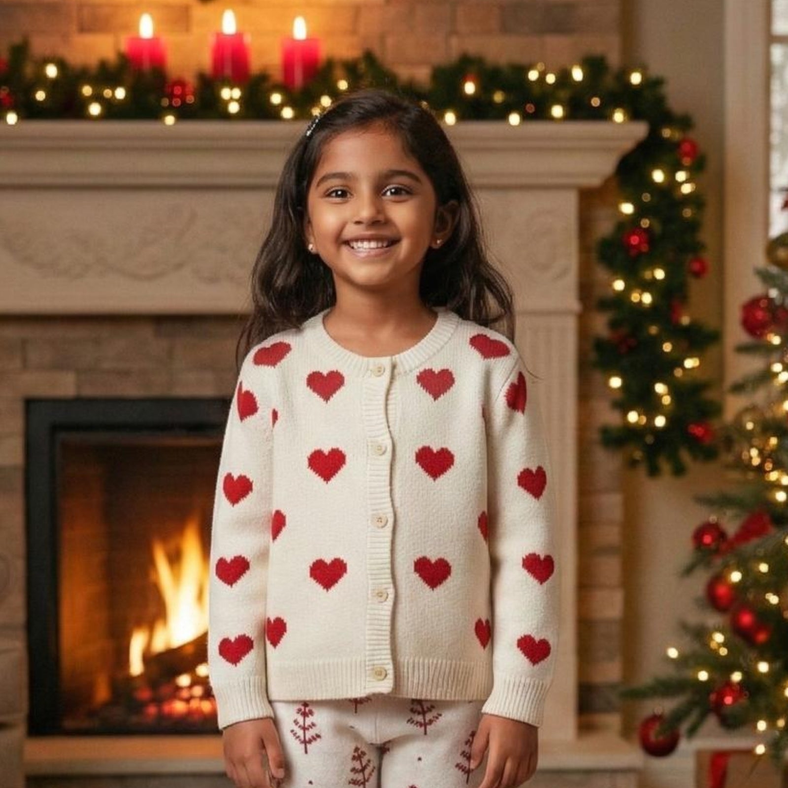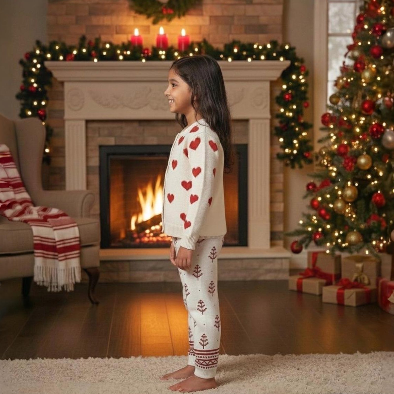 The Kids of Greendeer Girls Co-ord + Hand-Embroidered Christmas Beanie is made to make winter magical!