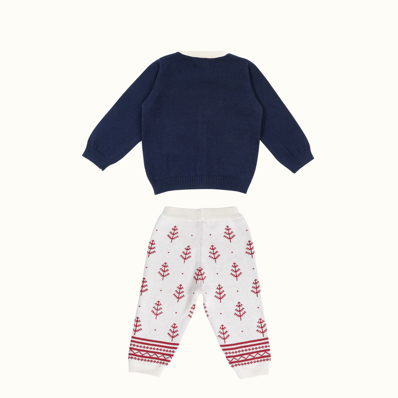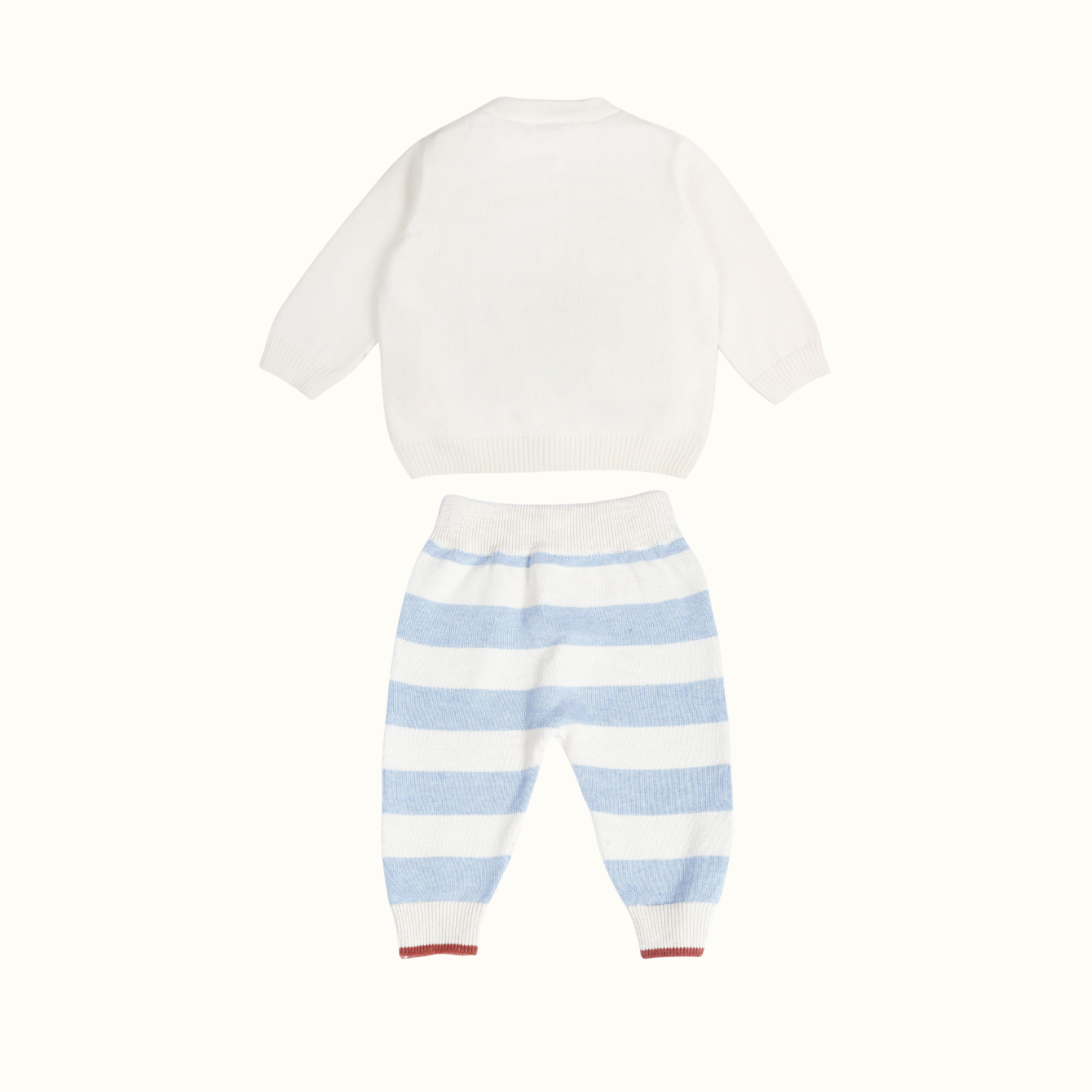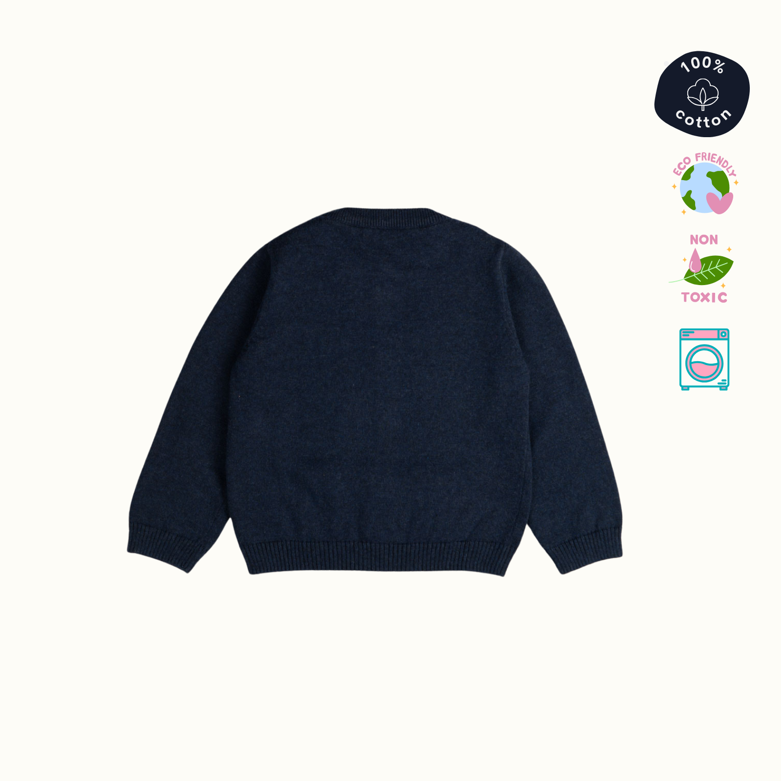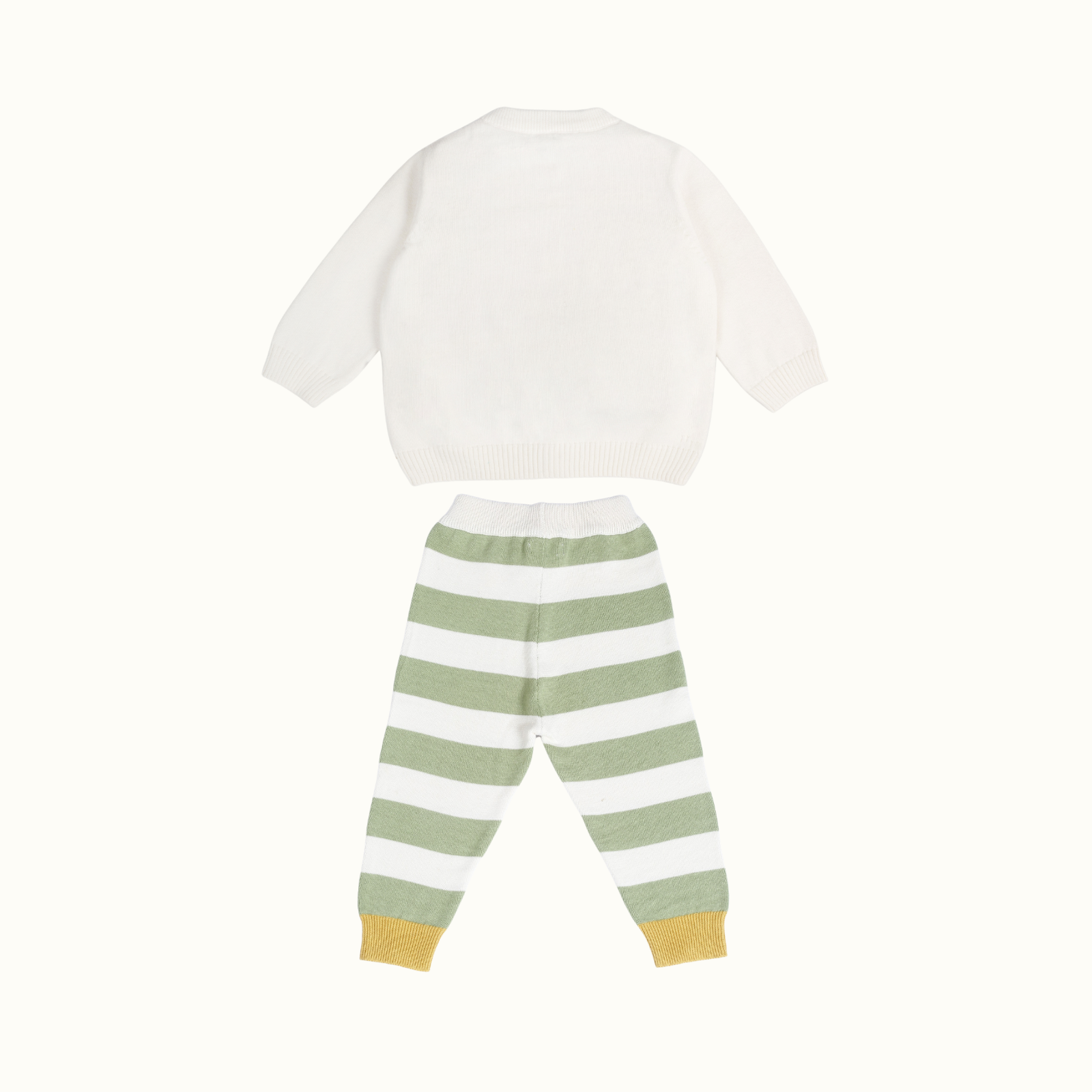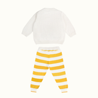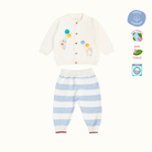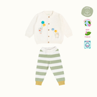 Our signature sweater and lower set features a roomier body-fit, ensuring ease of wear for babies. Crafted from 100% natural and non-toxic materials, it prioritizes their safety and well-being. The signature diaper lowers are designed with a low crotch and soft rib with a drawstring, allowing for a roomier and comfortable fit, enabling free movement.