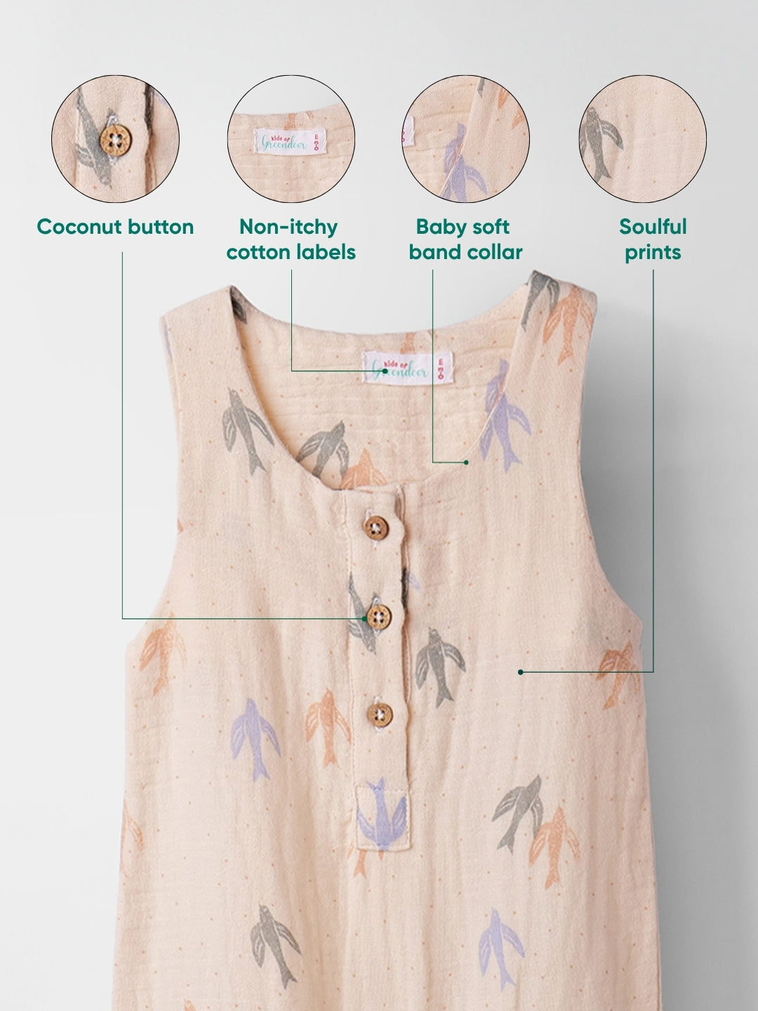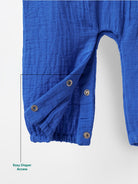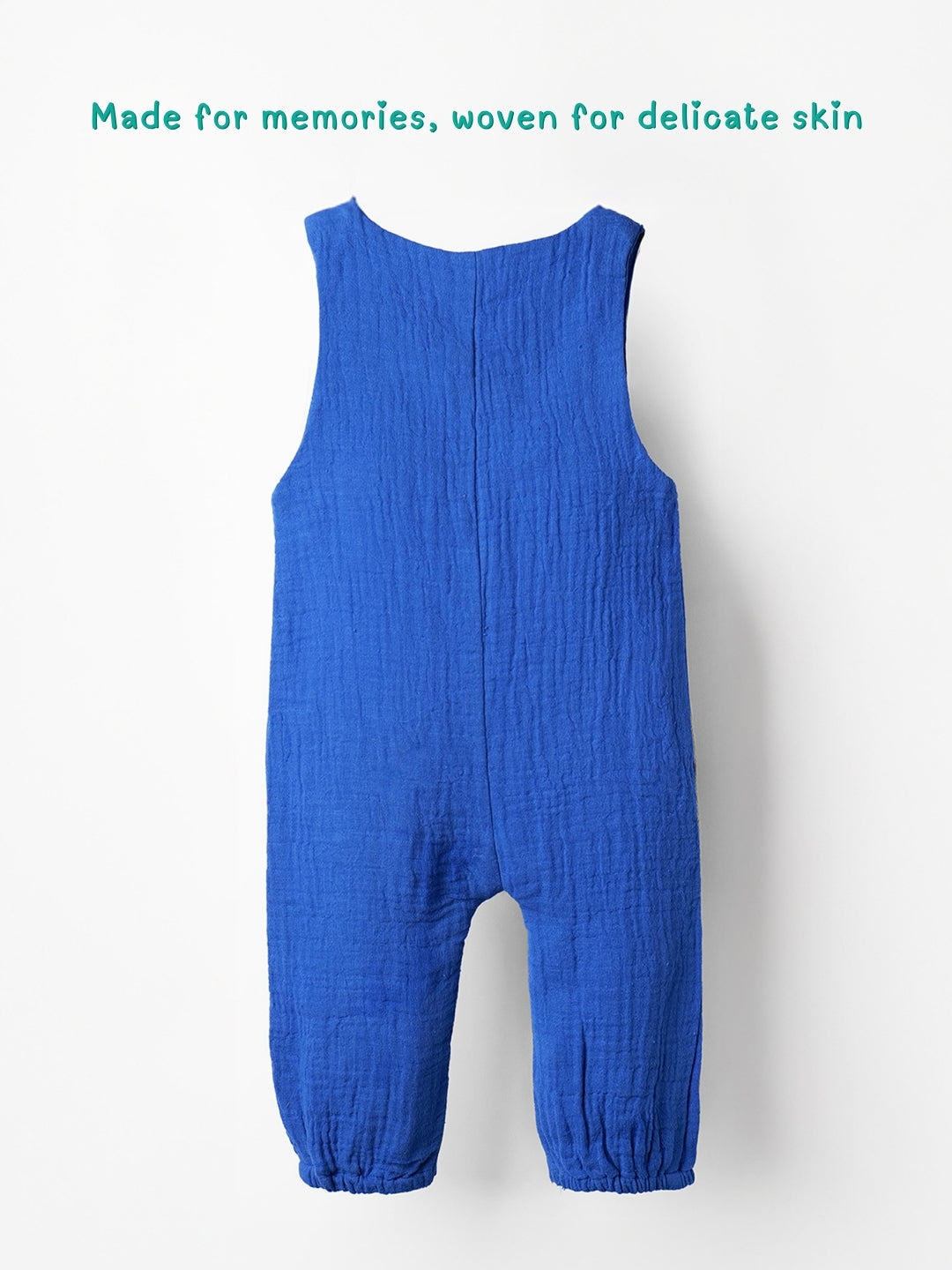 Offers a relaxed, roomy fit designed for babies to move freely. Soft gathers at the legs and button details give it a playful yet polished look.