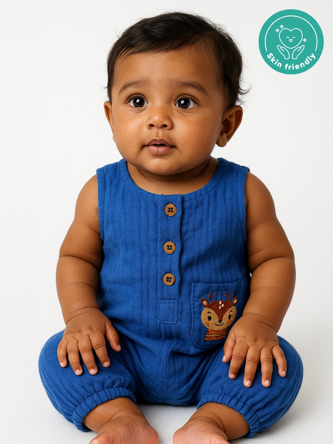 A breezy and skin-loving romper made from 100% ecological muslin cotton β soft, breathable, and thoughtfully designed for your babyβs comfort. With a cute deer embroidery on the front pocket and snap-button opening for easy diaper changes, this is a go-to piece for warm days, gentle play, and cuddle time.