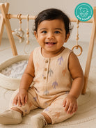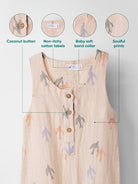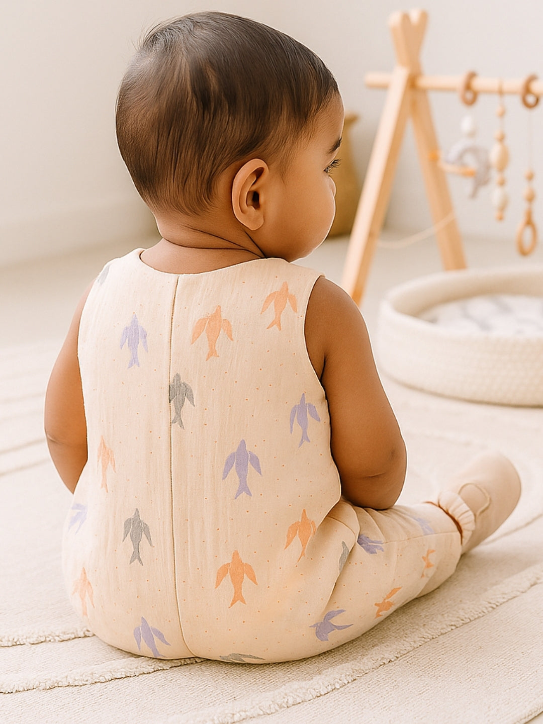 A breezy and skin-loving romper made from 100% ecological muslin cotton — soft, breathable, and thoughtfully designed for your baby’s comfort. With a cute deer embroidery on the front pocket and snap-button opening for easy diaper changes, this is a go-to piece for warm days, gentle play, and cuddle time.