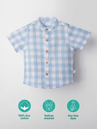 Add a splash of sea-inspired joy to your childโs wardrobe with this starfish-embroidered shirt . Made from 100% eco-conscious double muslin cotton, itโs gentle on delicate skin and designed for unrestricted movement. With coconut buttons and a baby-soft band collar, this summer-friendly shirt blends fun with function.